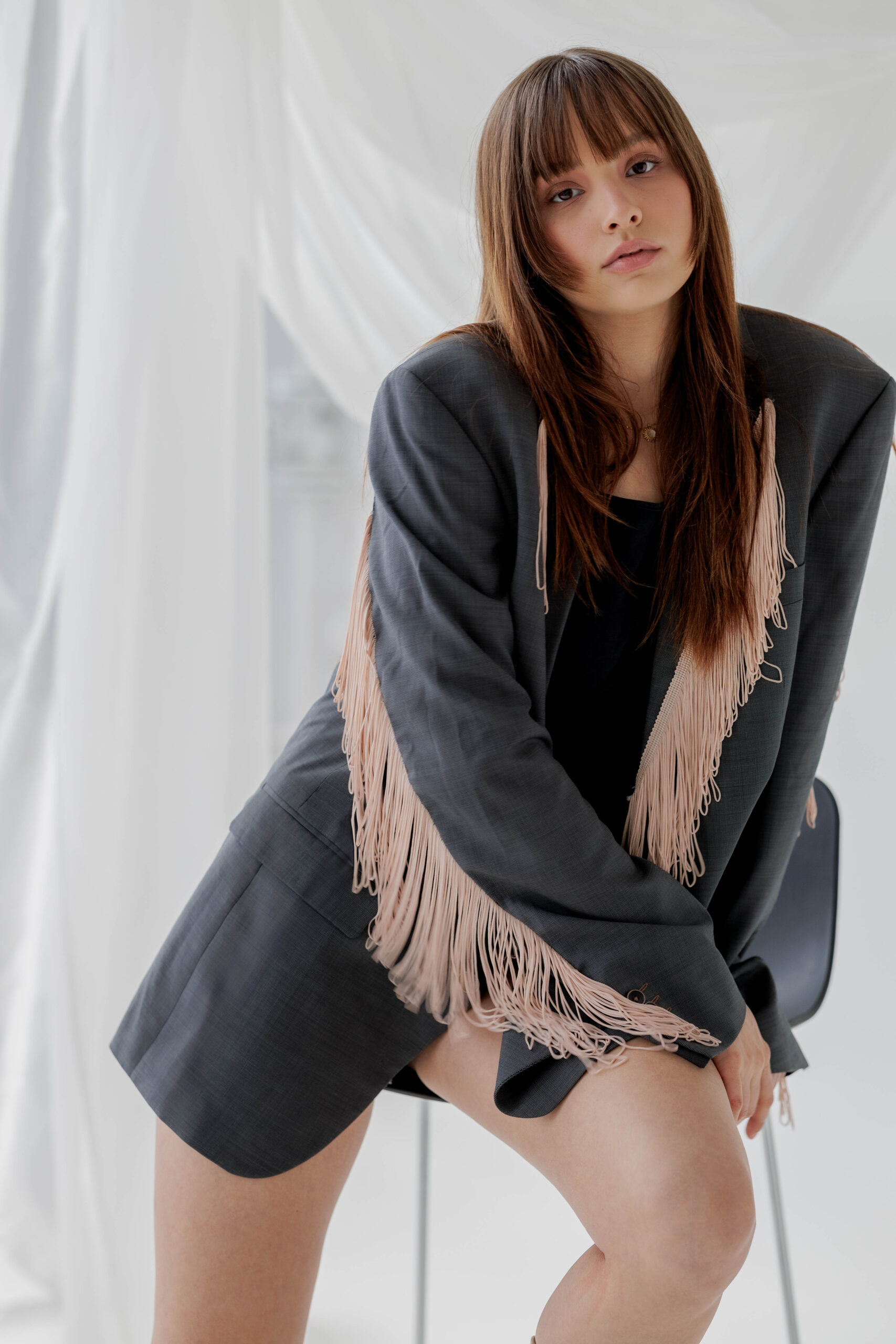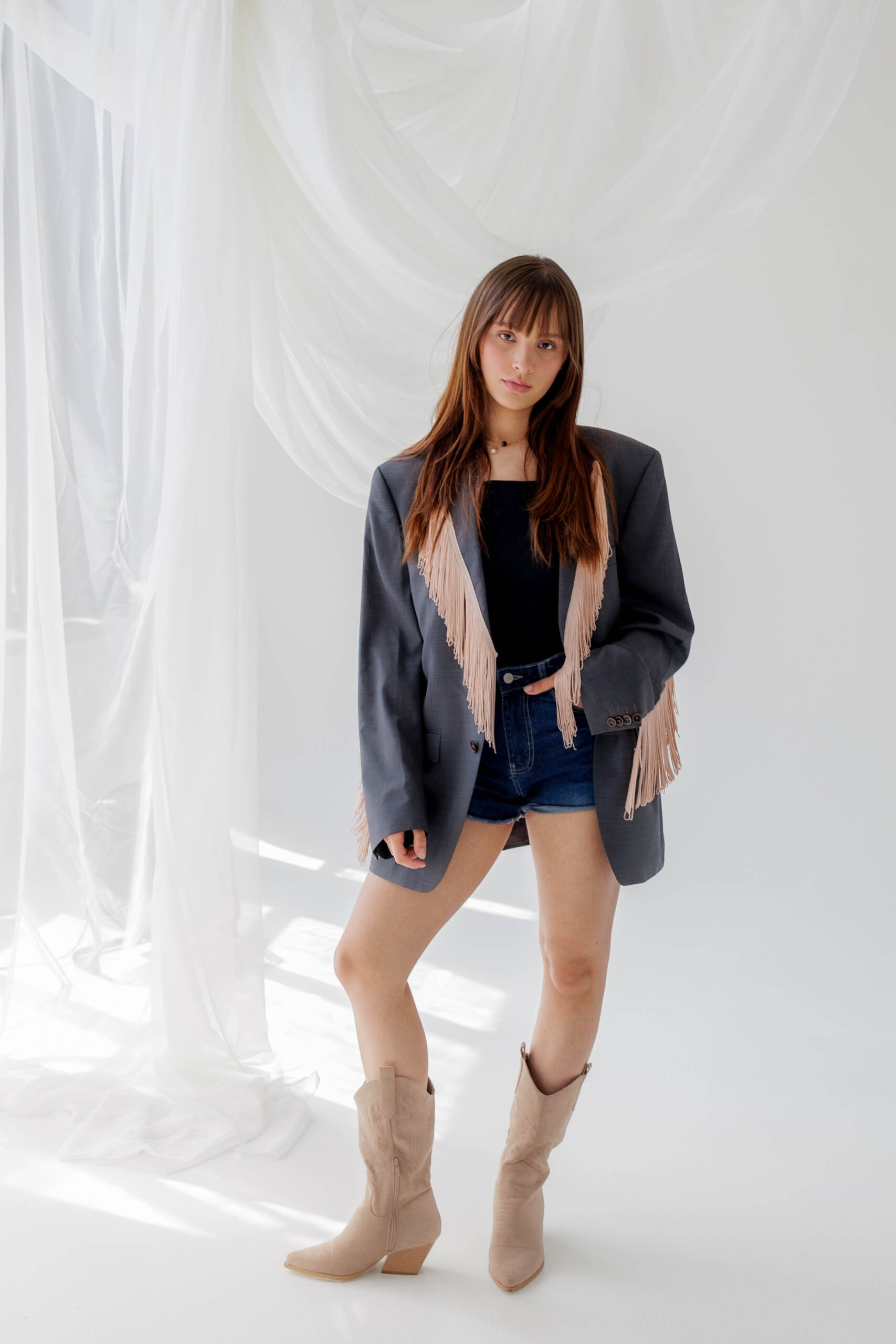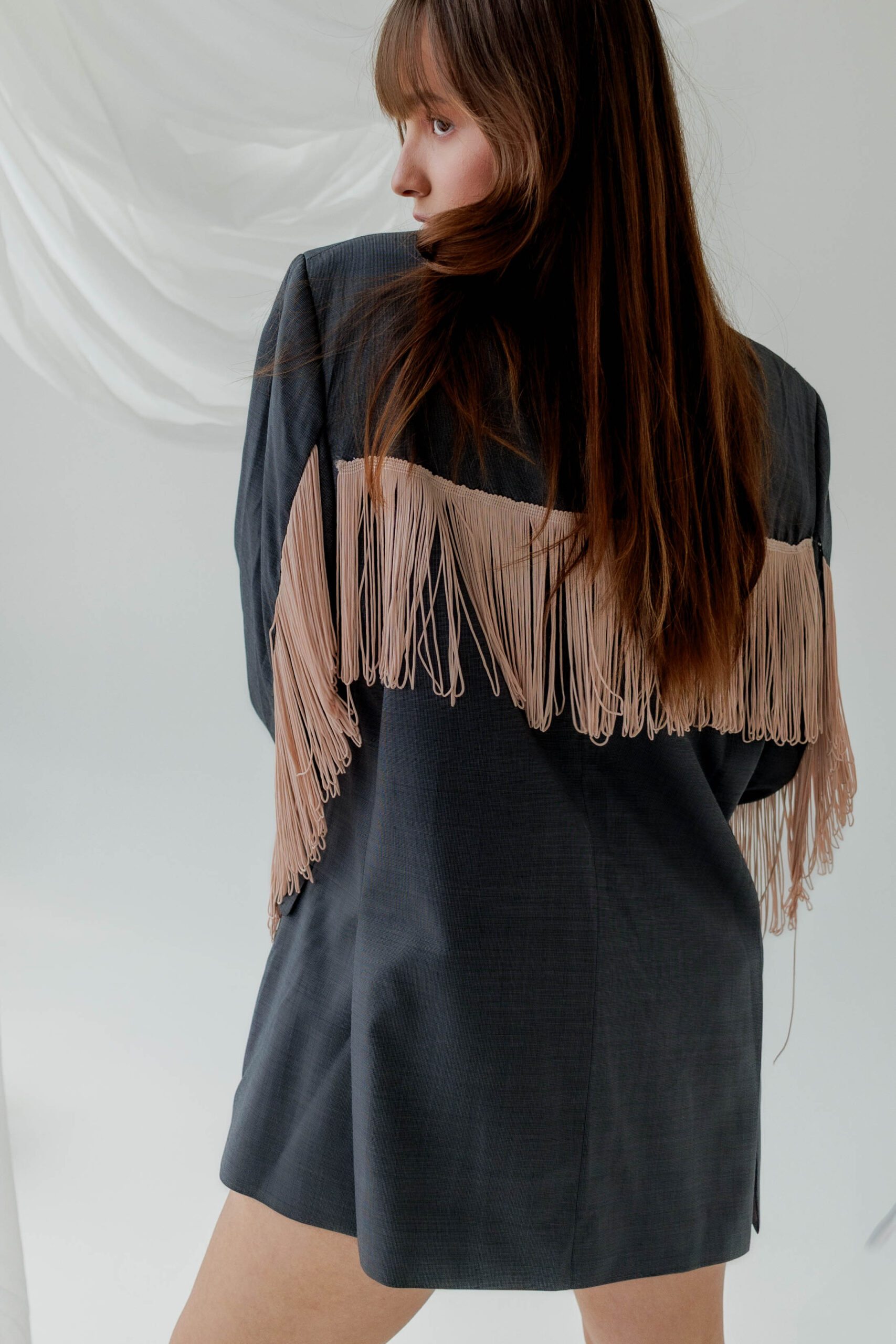 Szara marynarka z frędzlami